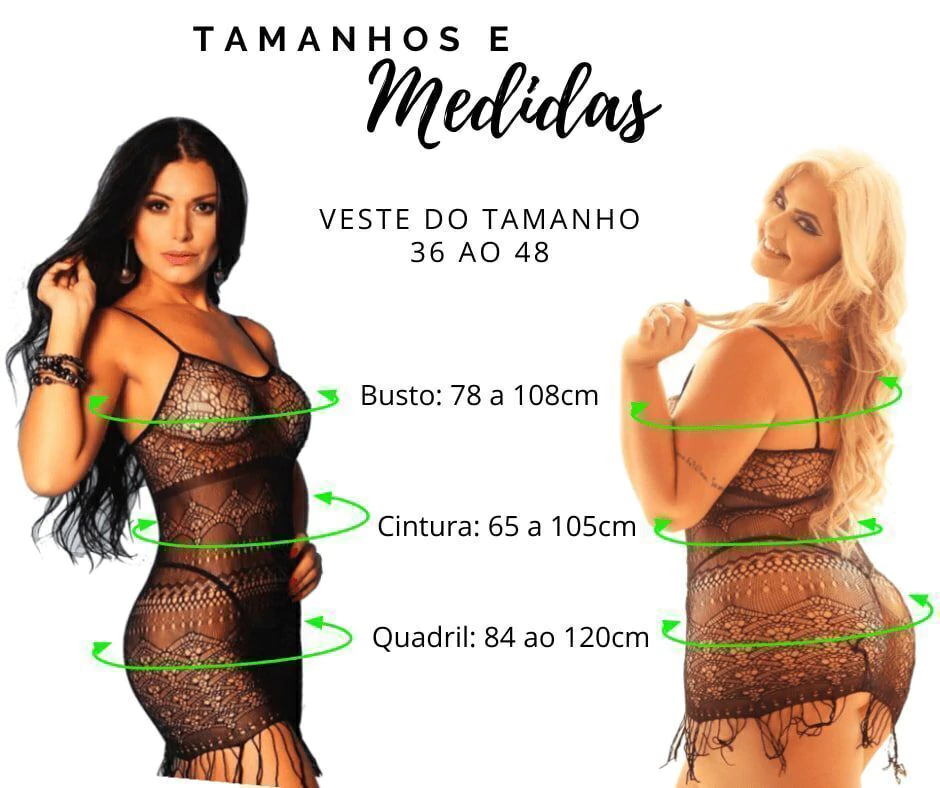 Esta peça deslumbrante envolve seu corpo com uma malha arrastão que exala sensualidade, enquanto o brilho sutil captura a luz, destacando suas curvas de maneira irresistível.